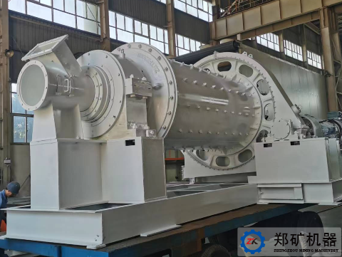 喂料設(shè)備將原料送入進料裝置的溜子內(nèi),<150℃原料經(jīng)過進料螺旋筒進入筒體倉內(nèi),在倉內(nèi)裝有一定數(shù)量的研磨體,由于筒體回轉(zhuǎn),襯板將研磨體帶到一定高度,再利用其降落時的沖擊能和摩擦能將原料進行破碎和研磨,在原料被破碎和研磨的同時,由專設(shè)的引風(fēng)機經(jīng)過磨機的出料裝置將已研磨好的細粉吸出磨機進入下道工序。